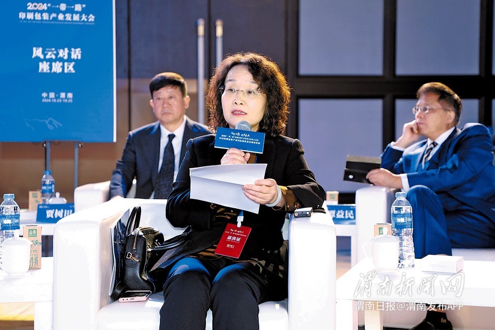 “推動‘高端智能印刷裝備整機制造’‘精裝智能聯動線設計’‘數字印刷噴墨打印頭研發’等關鍵卡脖子技術的自主創新;形成以渭南為核心的印包產業、高等院校、科研院所、知名企業加強耦合的協同創新發展格局。”在風云對話環節,北京印刷學院黨委常委、副院長劉尊忠教授以《聚集區位—高校—產業多維優勢助力渭南印包產業高質量提升》為題,與參會人員共同探討“一帶一路”大背景下印刷包裝產業高質量提升的實踐路徑。