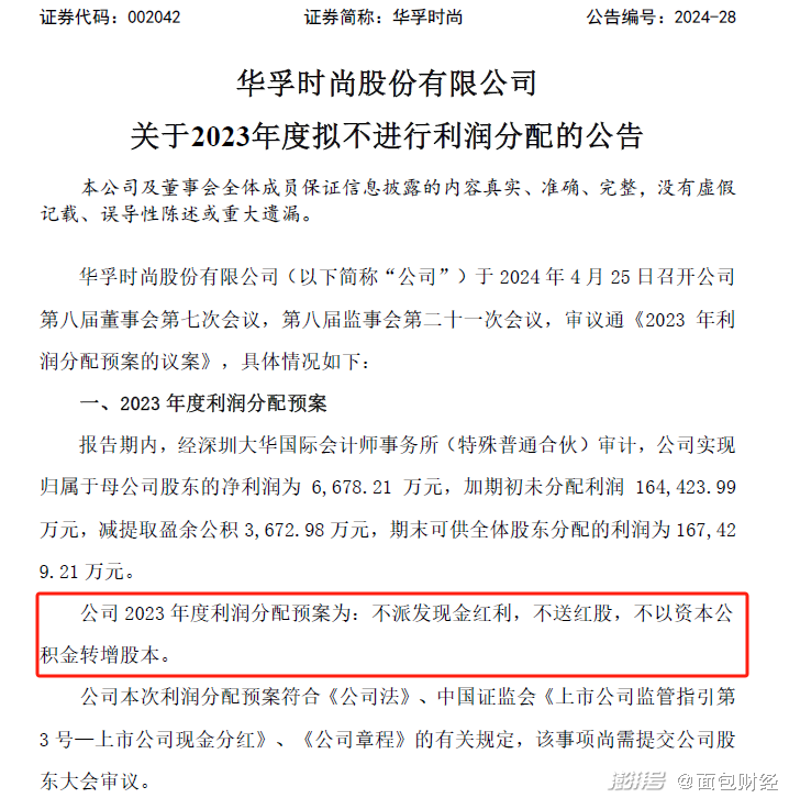 華孚時尚關(guān)于2023年度擬不進(jìn)行利潤分配的公告顯示,公司2023年度利潤分配預(yù)案為:不派發(fā)現(xiàn)金紅利,不送紅股,不以資本公積金轉(zhuǎn)增股本。